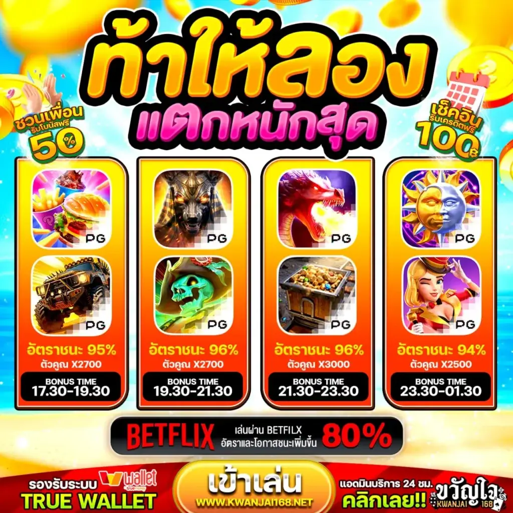 การเป็นผู้ชนะในโลกของความบันเทิงดิจิทัลคือการรู้จักเลือกเกมที่ถูกต้องในเวลาที่เหมาะสม และที่ PG168 เราได้ทำการคัดสรรและจัดกลุ่ม “เกมแตกหนัก” ที่มีอัตราการจ่ายสูง มีฟีเจอร์โบนัสที่น่าตื่นเต้น และได้รับการพิสูจน์จากผู้เล่นจริงแล้วว่าสามารถทำกำไรได้อย่างสม่ำเสมอ การใช้ ฟรีสปิน ในเกมเหล่านี้จะช่วยเพิ่มโอกาสในการเข้าถึงรอบโบนัสใหญ่ ซึ่งเป็นจุดที่รางวัลทวีคูณและสามารถเปลี่ยนเงินรางวัลของคุณให้เป็นก้อนใหญ่ได้อย่างรวดเร็ว